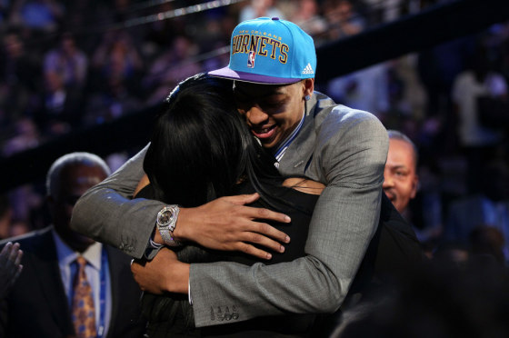 Anthony Davis of the Kentucky Wildcats hugs his mother Eranier after he was selected number one overall by the New Orleans Hornets during the first round of the 2012 NBA Draft at Prudential Center on June 28, 2012 in Newark, New Jersey. Check out the NBA Draft HQ on nbcsports.com for more info.