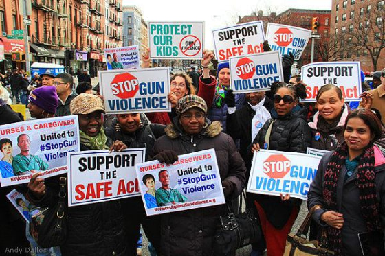 Supporters of New York's Secure Ammunition and Firearms Enforcement (SAFE) Act rally in Harlem, March 21, 2013.