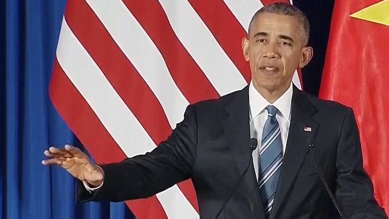 Obama made the historic announcement at a press conference in Hanoi with Vietnam's President Tran Dai Quang — his first visit to the country.