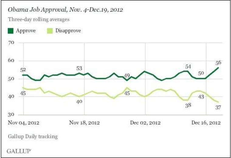 There are multiple explanations for the president's improved standing, and they're not mutually exclusive. In recent weeks, there's been improved economic data, a horrific national tragedy (which sometimes leads to a "rally around the flag" effect), and fiscal talks in which the president has offered a series of good-faith compromises. The developments come against the backdrop of the president's re-election, which also usually leads to increased public support.