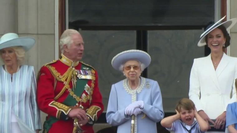 The queen was at the heart of the nationwide party that began with pomp and pageantry Thursday, while Prince Charles stepped in to take a salute and even little Prince Louis stole some of the limelight on the Buckingham Palace balcony.