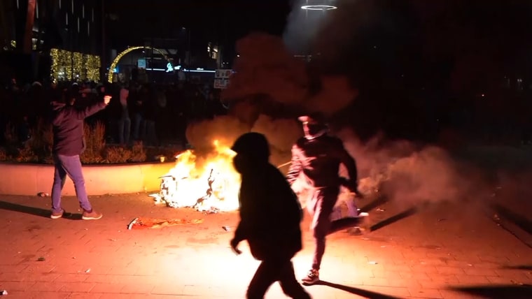 Mayor Ahmed Aboutaleb told reporters about police officers "felt it necessary to draw their weapons to defend themselves" more than once after protesters tore through the city's central shopping district, setting fires in their wake.