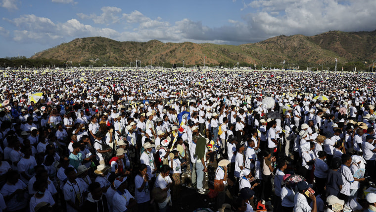 Almost half the population of East Timor, the most Catholic nation outside Vatican City, attended a Mass presided over by Pope Francis on Tuesday on the third leg of his Asia trip.