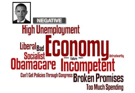 Negative words associated with Obama included economy and high unemployment, while big business and women's issues fell onto Romney's negative word cloud.