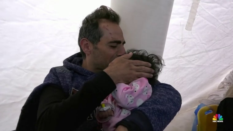 “She’s alive!” rescuers cheered, as a neighbor bundled her in his arms and raced her to the nearby hospital, in a scene captured by NBC News’ crew on the ground.