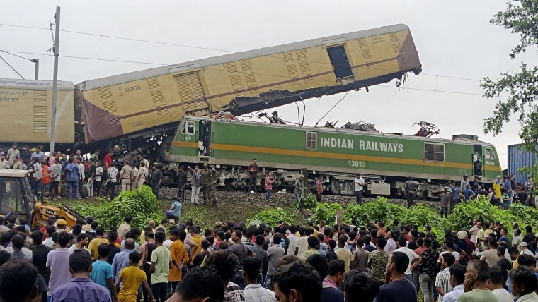 Media showed images of the pile-up, with containers from the goods train strewn nearby, and one carriage left nearly vertical after the accident, which comes just over a year after a signaling error caused one of India’s worst rail crashes.