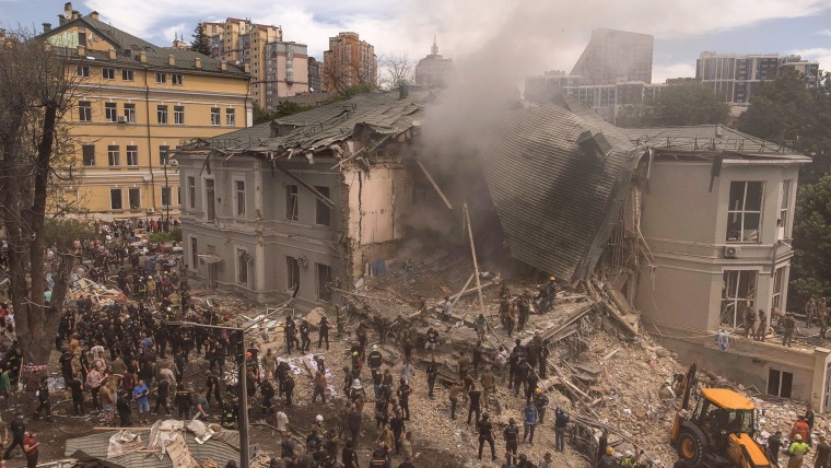 Roman Petrushev, a volunteer with Red Cross Ukraine, said hundreds of civilians were clearing the debris when he arrived. “It was just shock,” he told NBC News on Tuesday, adding that inside the hospital he saw corridors covered in blood and destroyed units with modern equipment.