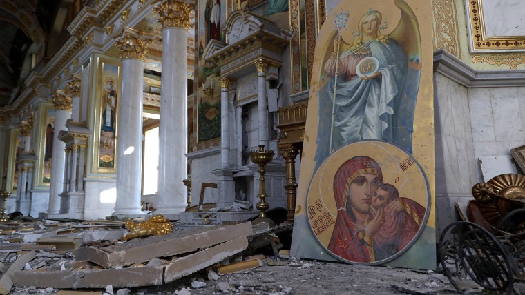 A video the Odesa City Council posted later on social media shows Mayor Gennadiy Trukhanov walking through the significantly damaged cathedral, which is strewn with rubble and debris.