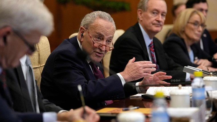 HONG KONG — A group of senators led by Majority Leader Chuck Schumer, D.-N.Y., met with Chinese President Xi Jinping in Beijing on Monday in a sign that Xi could hold a highly anticipated meeting with President Joe Biden this fall.