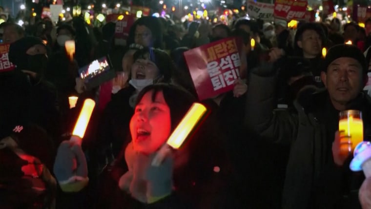 “I don’t want Yoon Suk Yeol to be Korean president. He did such bad things,” protester Hang Min Jo, 28, told NBC News from outside the fence.