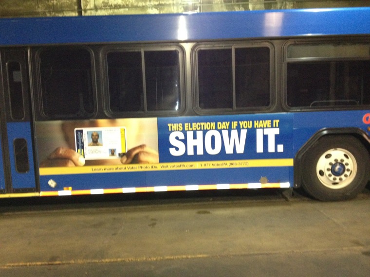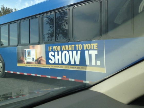 We reached out to the folks at Direct Media USA, who deal with advertising on CAT buses. They told us there must be a mistake, because the company removed any VotesPA ads that read "If you want to vote SHOW IT" back on October 4, in compliance with the judge's ruling. They told us they'd just put up new advertisements this past weekend -- 10 days or so after the ruling -- which look like this: