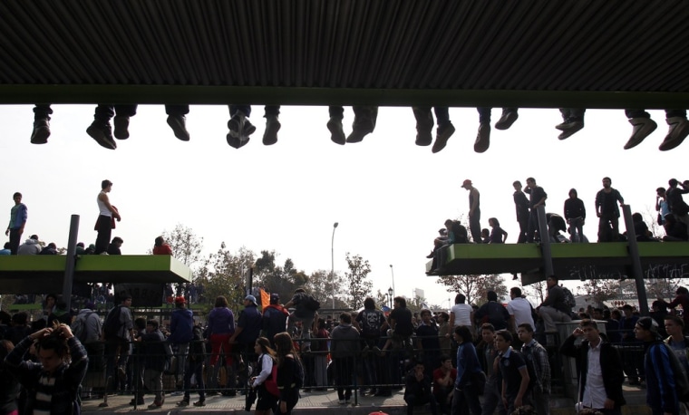 Thousands of students take part in a protest April 25 in Santiago, Chile. The students are demanding that the government of President Sebastian Pinera provide high quality and free public education.Hector Retamal / AFP - Getty Images