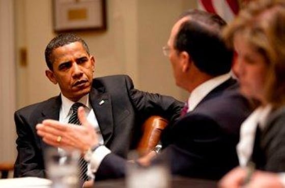 For the third time in two weeks, President Obama will meet today at the White House with several private-sector chief executives, discussing among other things the administration's fiscal plans. According to the Wall Street Journal, 14 CEOs will be in hand, including Goldman Sachs' Lloyd Blankfein, Caterpillar's Doug Oberhelman, and Pfizer's Ian Read.