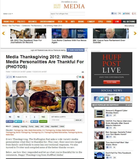 In the spirit of Thanksgiving, Huffington Post asked a variety of media personalities what they were thankful for this year.