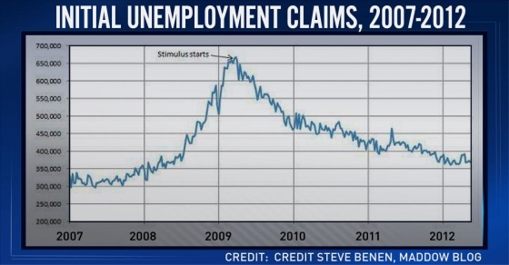 Mitt Romney keeps distorting President Obama’s record on jobs, and claims the stimulus didn’t create jobs, and expects the public to believe his lies. Ed Schultz used these charts Tuesday night to talk about the President’s job creation record: