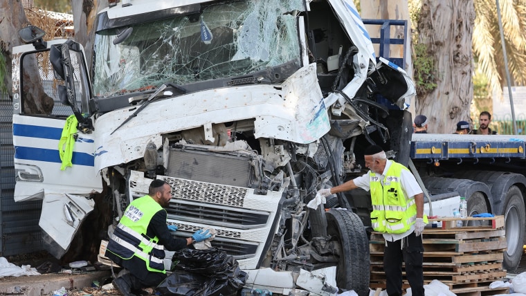 A spokesperson for Israel’s police force said a preliminary investigation indicated that the truck collided with passengers as well as the bus.