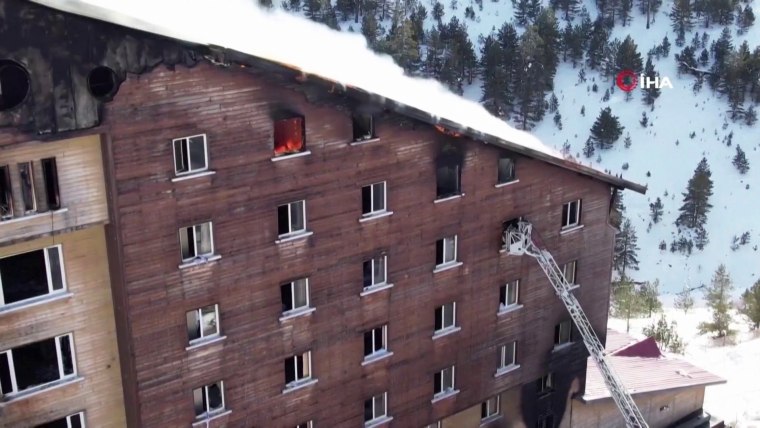 The fire occurred at the Grand Kartal Hotel in the Kartalkaya ski resort, a 12-storey hotel which had 238 registered guests. It was consumed by flames after the blaze started on the restaurant floor around 3:30 a.m. local time (7:30 p.m. ET Monday).