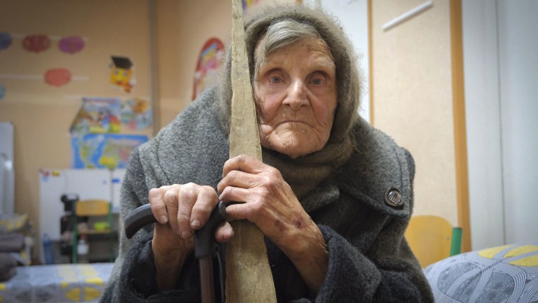 KYIV, Ukraine — With shells raining down and Russian forces advancing, 98-year-old Lidia Stepanivna Lumikovska made the decision to leave her home in the village of Ocheretyne in eastern Ukraine and walk around 6 miles to safety.