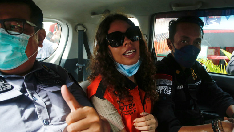 Mack, now 26, was escorted through a crush of reporters outside the Kerobokan Female Prison in Denpasar, the Bali provincial capital, into a waiting car that took her to an immigration office near Bali’s international airport on Friday morning.