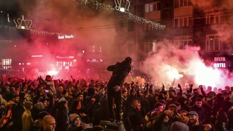 Video shared on social media and geolocated by NBC News showed Maccabi fans chanting anti-Arab slogans in front of the square’s National Monument.
