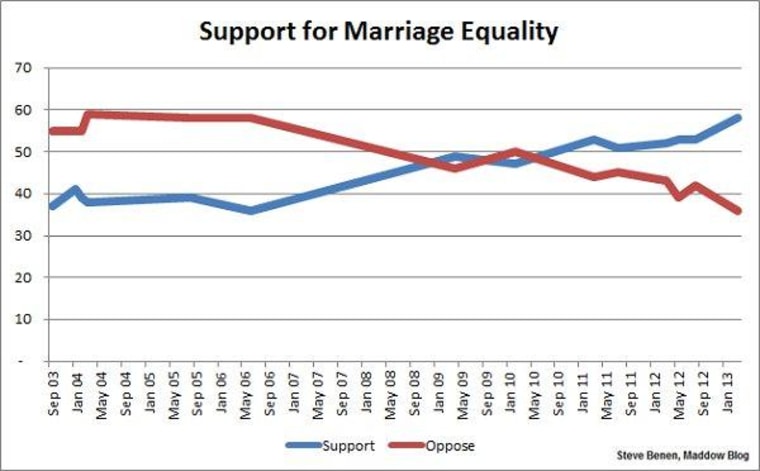 Also note, history suggests movements on social progress rarely go backwards, and there's nothing to suggest opponents of marriage equality will suddenly reemerge and become the majority again. That trend line in the poll is only going to keep moving in a progressive direction, and there's not much Republicans can do about it.