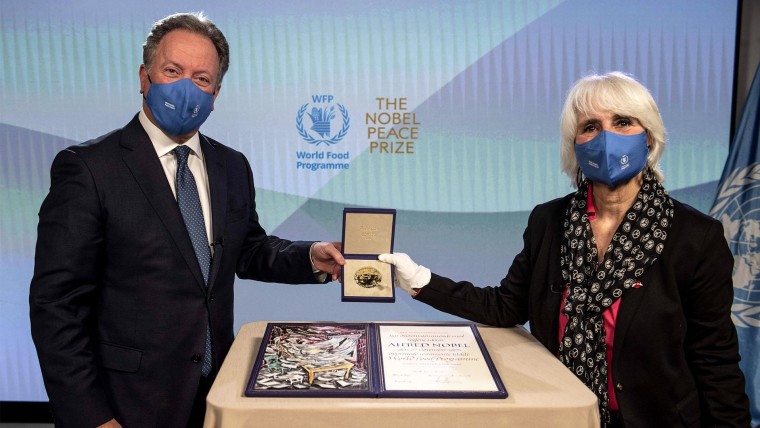 "Famine is at humanity’s doorstep,” he said, accepting the award. “Because of so many wars, climate change and a global health pandemic that makes all that exponentially worse, 270 million people are marching towards starvation. Failing to address their needs will cause a hunger pandemic which will dwarf the impact of Covid.”