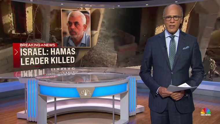 Leader of Hamas killed by Israeli forces; Harris campaigns in battleground Wisconsin, 19 days before election; Early voting underway in storm-ravaged North Carolina; and more on tonight’s broadcast.Oct. 17, 2024