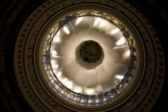 The Capitol rotunda re-opens Thursday with a protective netting, which will be in place for about a year and a half to protect members of Congress, staff, and visitors during the project to restore the building's iconic dome.