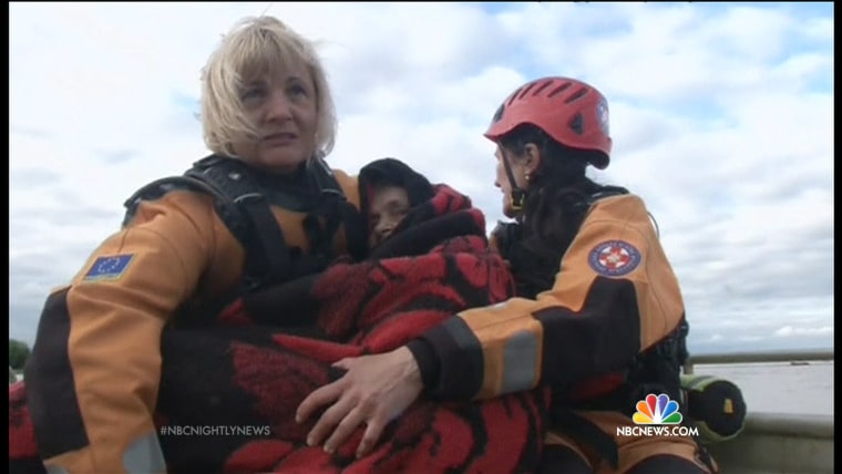 Floodwaters forced tens of thousands of people from their homes when four months’ worth of rain fell in one day.