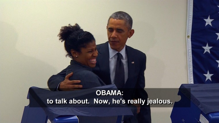 While casting an early vote in Chicago, President Obama met a couple at the polling place, and some teasing ensued when a joking boyfriend told the president of the United States, “Don’t touch my girlfriend.” See how the commander in chief responded.