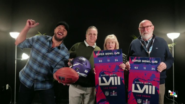 Football fans across the country are celebrating after they were surprised with tickets to Super Bowl 58 in Las Vegas. NBC News’ Kate Snow has more on these moments of joy and celebration.Jan. 22, 2024