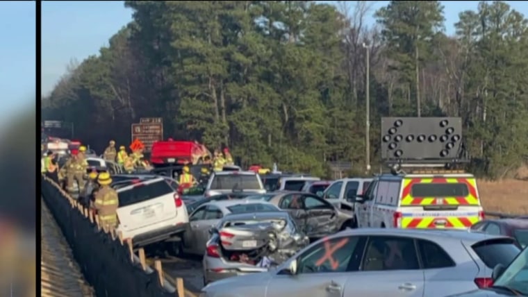 Interstate 64 was shut down in both directions near Williamsburg, Virginia, after an at least 69-car chain reaction accident. Millions of Americans are on the move for the holidays, with dangerous weather adding to the chaos.Dec. 22, 2019
