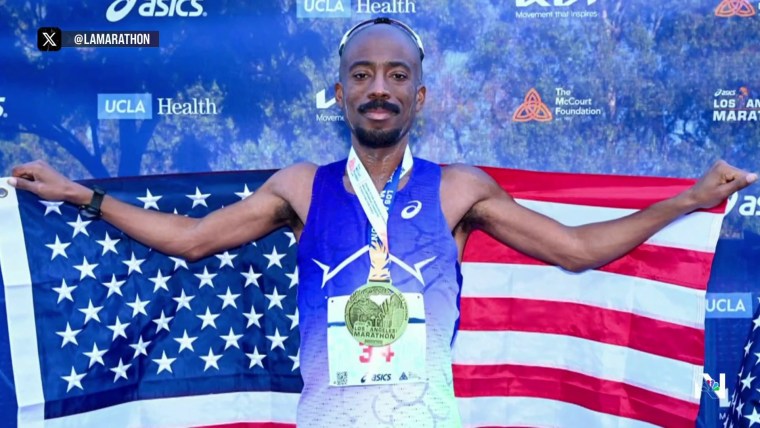 American runner and high school track coach Nathan Martin won the Los Angeles Marathon in a stunning photo finish. He says he hopes his win inspires the students he coaches to never give up, and remember no race is over until you cross the finish line. NBC Nightly News anchor Tom Llamas reports. March 9, 2026