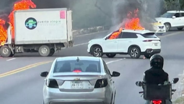Many American tourists are still sheltering in place amid a wave of drug cartel violence in Mexico. It began after Mexican troops killed a notorious drug lord. NBC News’ George Solis reports. Feb. 24, 2026