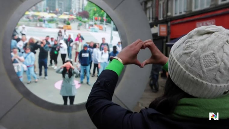 An innovative art concept called The Portal is connecting people on a street in New York City with those on a street in Dublin in real time. From both cities, NBC News' Emilie Ikeda and Meagan Fitzgerald report on how it works.May 21, 2024