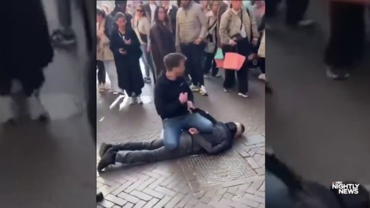 After a suspect with a knife attacked and injured five people in Amsterdam, a man from Britain stepped in to help overpower him. NBC News’ Raf Sanchez reports the city’s mayor awarded him with a medal for his heroic actions.March 28, 2025
