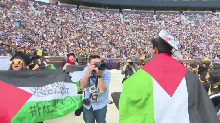 The number of arrests on college campuses continues to grow. Dozens of pro-Palestinian demonstrators were arrested Saturday at the University of Virginia. Meanwhile, the LAPD cleared out the encampment at USC this morning after the university told demonstrators that they were violating the law. With graduation season beginning and some commencement ceremonies already facing disruptions, schools are grappling with whether to change their plans. NBC News’ Adrienne Broaddus reports on the campus tensions.May 5, 2024