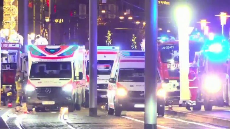 A car drove into a crowd at a Christmas market in Magdeburg, Germany, killing at least two people and injuring dozens of others, authorities said. A suspect was arrested. NBC News' Erin McLaughlin reports.Dec. 21, 2024