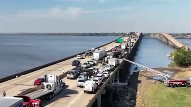 A combination of dense fog and smoke from at least three wildfires burning in Louisiana caused a miles-long car pile-up on I-55 near New Orleans, according to officials. NBC News’ Priscilla Thompson reports.Oct. 23, 2023
