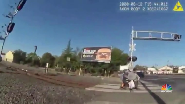 Officer Erika Urrea was on patrol when she noticed a man whose wheelchair was stuck on railroad tracks with a train approaching fast. He’s now recovering from his injuries after Urrea’s quick action saved his life.Aug. 13, 2020