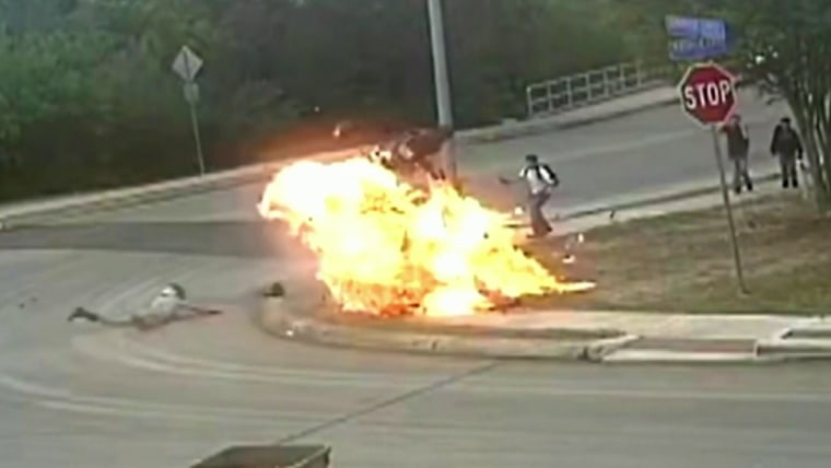 In San Antonio, Texas, a fireball erupted after a motorcycle slammed into a curb. The rider caught fire and nearby children ran for safety. NBC News’ Ryan Chandler has more on the harrowing moments captured on camera.April 6, 2026