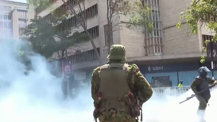 Police in Nairobi fired on thousands of people after rioters stormed Parliament, protesting a proposed tax law. At least five people were reported killed and dozens wounded. Former President Obama's half-sister was among the protesters. NBC News' Andrea Mitchell reports.June 25, 2024