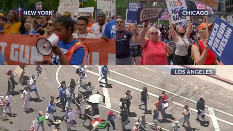 Tens of thousands of protesters took to the streets on Saturday, demanding Congress take action on gun control. Today, activists are responding to the bipartisan gun proposal. While some are calling the deal “historic,” others say the agreement falls far short. Public sentiment has been shifting towards tougher gun laws as mass shootings become more common.June 12, 2022