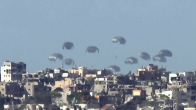 With the humanitarian crisis worsening in Gaza and some people close to starvation, NBC News' Richard Engel joined a Jordanian air force mission to drop food aid by air today.March 7, 2024