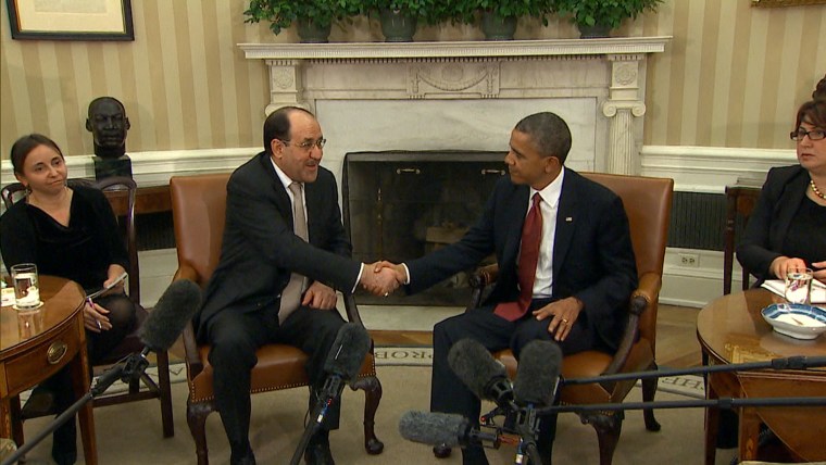 Iraq’s Prime Minister Nouri al-Maliki came to the White House to plead with President Obama for U.S. military and intelligence assistance to put down the violent insurgency that has killed thousands of Iraqis. NBC’s Brian Williams reports.Nov. 1, 2013