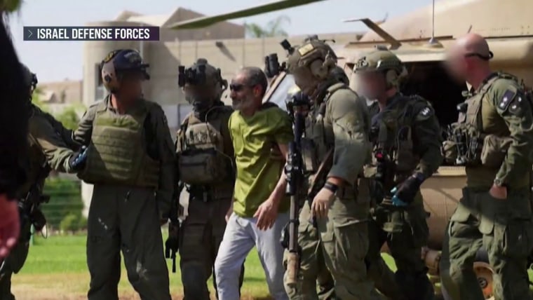 A 52-year-old hostage held in Gaza was rescued by the Israeli military. He is one of the few hostages to be freed by Israel in a military operation, almost a year after the Oct. 7 terrorist attack in southern Israel. NBC News' Matt Bradley reports.Aug. 27, 2024