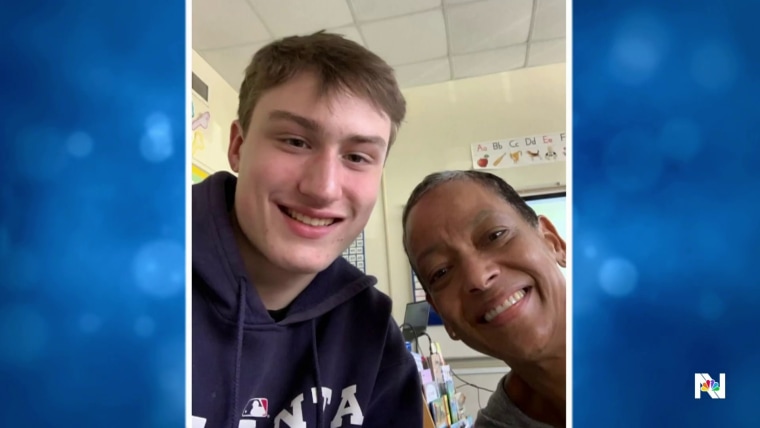 North Atlanta High School grad Jude Hamilton was surprised by a warm embrace and kind words from his favorite instructor, kindergarten teacher Kelly Laurent. Ms. Laurent says that even years later, she remembers Jude in an extra special way. NBC News’ José Diaz-Balart has the teary reunion.June 1, 2024