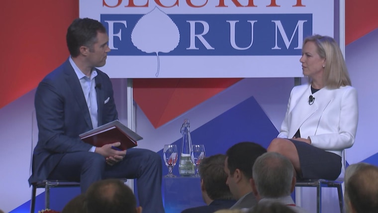 "I haven't seen any evidence that the attempts to interfere in our election infrastructure was to favor a particular political party," Nielsen told NBC News National Correspondent Peter Alexander at the Aspen Security Forum, in an interview that focused heavily on Russian meddling and the controversy of separating migrant children from their parents.July 19, 2018