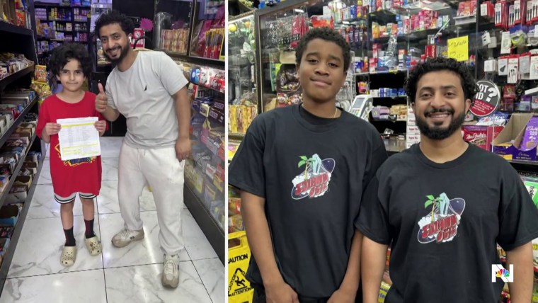 Kids in Staten Island are flashing their glowing report cards and getting a big boost from one deli owner. Wail “Wally” Alselwi has been doling out groceries for free in exchange for good grades. NBC News’ Sam Brock takes a look.June 16, 2025