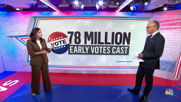 More than 78 million voters cast early ballots ahead of Election Day. More Republicans voted early than in previous elections. NBC News' Hallie Jackson reports on what the numbers show.Nov. 4, 2024